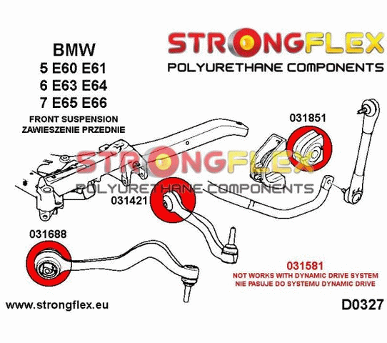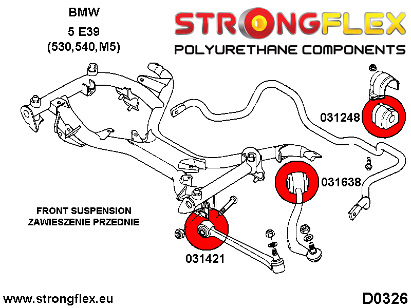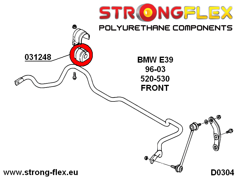 Strongflex indre kontroll-arm, foran. Hardhet: GUL (90ShA)